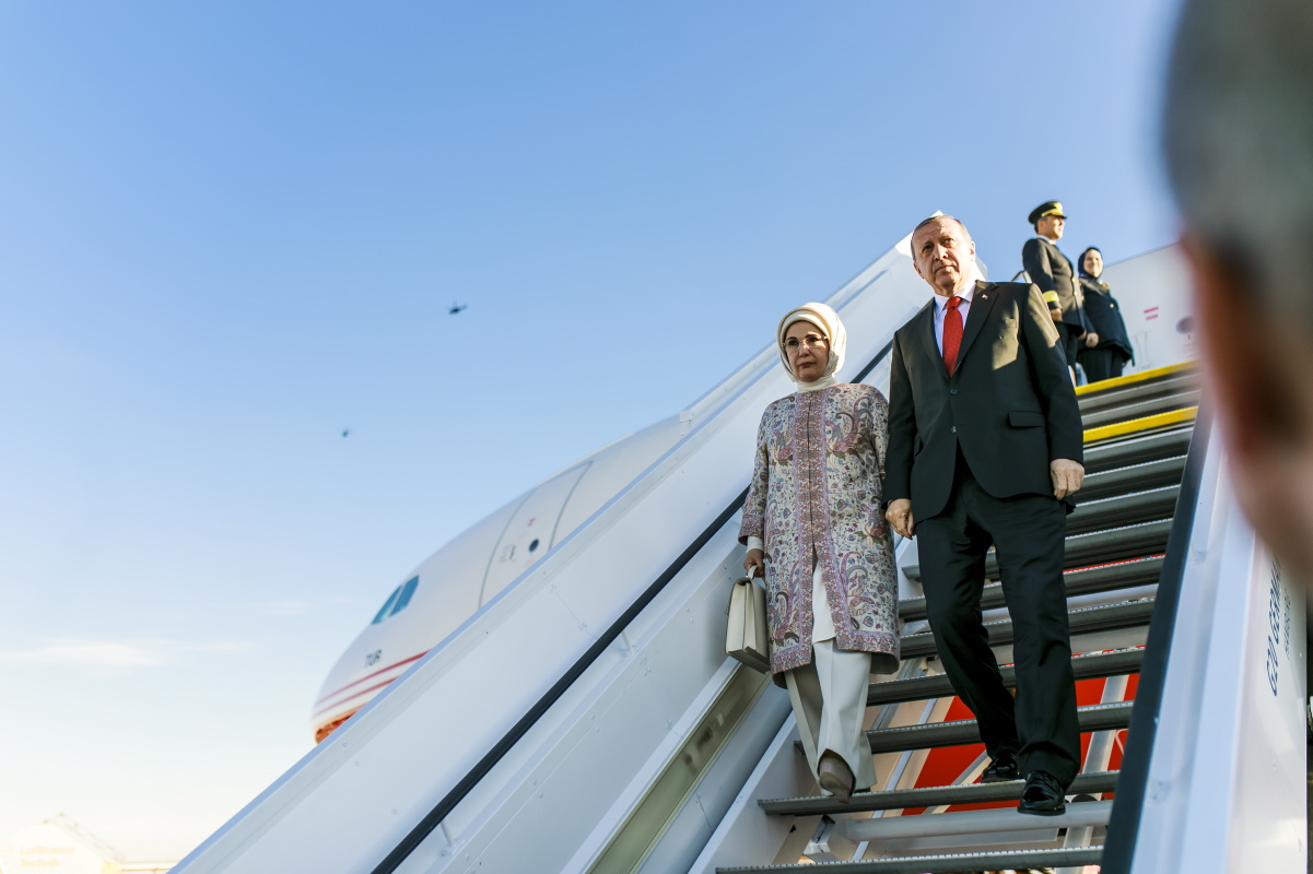 Arrival of Turkish President Recep Tayyip Erdoğan and his wife Emine at the Hamburg Airport.
